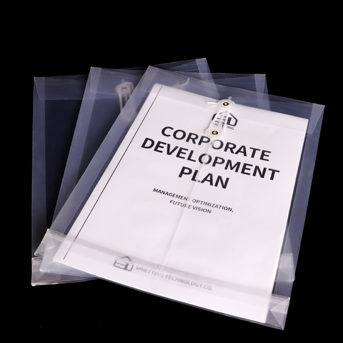 Düğme dize ile en kaliteli PP temizle poli zarflar su geçirmez ve toz geçirmez büyük kapasiteli FC halat sarılmış dosya çantası